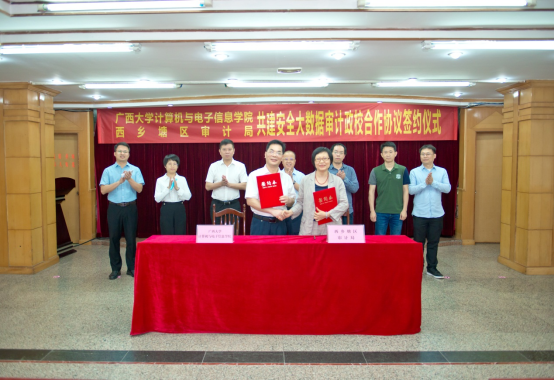 2022年5月12日,jdb电子游戏官方网站和南宁市西乡塘区审计局在西乡塘区政府办公楼,举行“jdb电子游戏官方网站与南宁市西乡塘区审计局安全大数据审计政学合作框架协议”签约仪式暨交流座谈会。