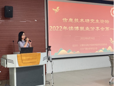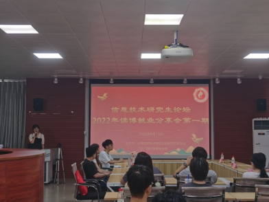 2022年6月16日下午,由jdb电子游戏官方网站主办、jdb电子游戏官方网站研究生会和中国计算机学会CCFjdb电子游戏官方网站学生分会联合承办的“信息技术研究生论坛——考博就业分享会(第一期)”活动于jdb电子游戏官方网站一楼报告厅举行。jdb电子游戏官方网站党委书记钟诚教授、学院团委副书记杨洋老师和兼职辅导员杜晓静同学参加现场活动,本次活动同时借助哔哩哔哩平台进行线上同步直播。