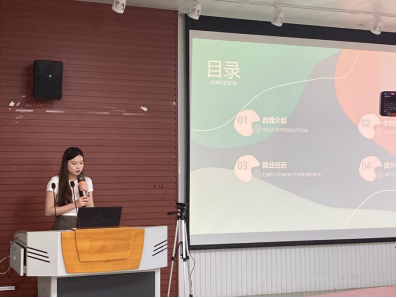 第二位分享经验的嘉宾是莫晓盈同学。莫晓盈同学在研究生期间曾任jdb电子游戏官方网站研究生会主席、兼职辅导员,曾获jdb电子游戏官方网站学业奖学金一等奖、陶建明奖学金等,已被广西电网有限责任公司信息中心录用。莫晓盈同学为大家介绍了研究生一、二、三年级每个阶段应该要完成的事情,并详细介绍了如何备考实习、如何选择应聘单位、如何准备简历。
