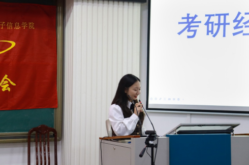 第二位经验分享人是2021年成功考研升入jdb电子游戏官方网站读硕的通信工程182班吴艳丽同志。吴艳丽同志分享了自己的考研动力、信息获取渠道、如何选择报考学校与专业、如何复习各考试科目,并鼓励同学们在考研的过程中要保持良好心态、坚持不懈。