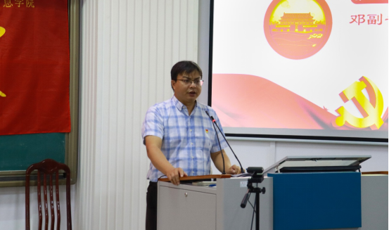 首先,由学院党委副书记邓珍琪老师讲话。邓老师希望主题党日活动以更多更精彩的形式开展,并积极开拓室外活动;希望全体党员发挥先锋模范作用,全心全意为同学们服务,帮助同学们解决实际困难,带动班级、宿舍学习氛围,与同学们和睦相处,严格遵守各项规章制度;希望同学们以端正态度参与活动、认真听讲,富有收获与感悟;希望同学们通过经验分享会确立长远目标,认真规划大学生涯并付诸行动。