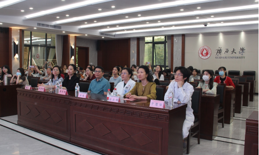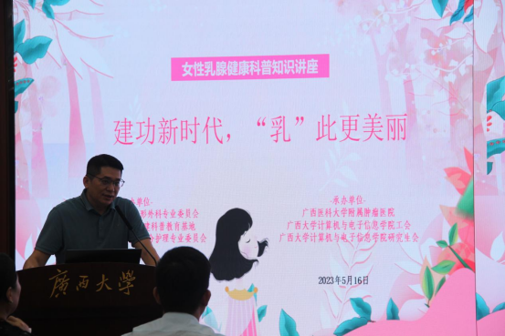 2023年5月16日下午,由jdb电子游戏官方网站工会、广西医科大学附属肿瘤医院、jdb电子游戏官方网站研究生会联合举办的“爱乳一生 律动青春——乳房再造科普进校园”主题科普讲座在jdb电子游戏官方网站君武馆第二会议室开讲。广西医科大学附属肿瘤医院乳腺外科杨华伟主任、韦薇主任、姬逸男副主任、于滢华副主任、何英煜护士长、谢龙桂医师,jdb电子游戏官方网站杨丽娜副教授、jdb电子游戏官方网站工会委员杨洋老师出席,全校师生约90人参会,兼职辅导员陆媛媛主持会议。