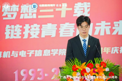 2019级信息安全专业本科生、现jdb电子游戏官方网站第25届研究生支教团志愿者出君儒同学发言,他衷心祝福学院30岁生日快乐,永葆青春,再创辉煌。