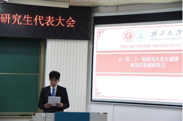 第二阶段会议听取了学院第二十届研究生会执行主席王子威同学所作的第二十届研究生会工作报告,对过去一年研究生会管理制度、团支部构建、活动开展等工作进行总结。学院第二十届研究生会执行主席陈东民同学宣读《jdb电子游戏官方网站第十四次研究生代表大会倡议书》,与会代表认真聆听和审议,一致表决通过倡议书。