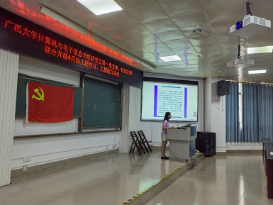 2024年4月19日,jdb电子游戏官方网站研究生第一党支部和电信221班在学院214报告厅联合开展主题党日、主题团日活动。本次活动由研究生第一党支部副书记韦惜旖同志主持。