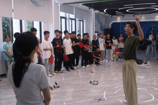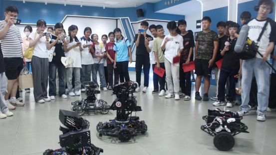 最后,2022级计算机科学与技术专业本科生郝兴家同学和2022级计算机技术专业研究生苏钊同学和给大家展示了遥控机器人和虚拟现实(VR)数字世界。遥控机器人是jdb电子官网学生自主编写程序设计的实用机器人,它可以精准定位目标方向并精准发射弹珠;虚拟现实(VR)数字世界让同学们穿戴好轻便却功能强大的VR头显和触感手套,在虚拟世界中俯瞰jdb电子游戏官方网站的全貌全景。