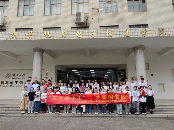 2024年7月16日下午,广西百色市那坡县民族初级中学和城厢镇初级中学来jdb电子官网研学参观,开展“大手拉小手,共铸国安墙”为主题的暑期活动。此次活动,由jdb电子游戏官方网站团委指导的研究生支教团团长出君儒同学带队,开展集理论宣讲与专业实践相结合的活动。活动由研究生支教团成员王泽远、陆满替两位同学领队讲解,学院辅导员黄柏雄老师及学生50余人参加。