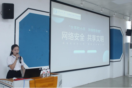 其次,jdb电子游戏官方网站第十届研究生支教团成员、jdb电子官网2023级计算机技术研究生陆满替同学开展《网络安全 共享文明》的理论宣讲。陆满替同学用简单明了的语言,由浅入深对网络安全的概念、网络安全的法律法规、以及网络中防骗的小技巧逐一介绍。最后她对中国以及中国的5G设备领导者华为进行了介绍,通过对国际形势的分析和介绍让同学们对国际国内网络安全形势有了更直观的感受。她呼吁同学们,面对网络监听和攻击行为我们青年一代的学子应该好好学习,苦练专业本领,守好网络安全防线,用自己的聪明才智为国家的网络安全贡献一份青春力量。