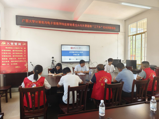 2024年7月15日下午,实践团一行来到广西百色市那坡县念头村进行调研。首先,团队成员在念头村党群服务中心与念头村村委会交流座谈,会上,学院乡村振兴“积分制”小程序开发小组成员梅松同学汇报了小程序进展情况及遇到的问题,村委工作人员对小程序投入使用提出改进建议。小程序计划于今年9月份在念头村开始上线使用,并计划在那坡县全县推广使用。随后,实践团一行在jdb电子游戏官方网站派驻念头村第一书记孔宇同志的带领下,走访念头村贫困户,与他们亲切交谈,了解他们的身体状况与家庭情况,并给予了关心和帮助。最后,实践团在孔书记的带领下参观了百香果种植园和家禽家畜养殖基地。通过走访农户及深入田间地头,实践团的每一位队员都深刻意识到了国家精准扶贫工作的必要性与重要意义,同时也对乡村振兴有了更直观、更深刻的理解。