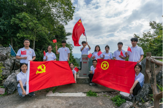 下午,实践团踏上了探寻588号界碑(“云端”界碑)的征途。团队成员们沿着戍边巡逻路线,徒步穿越悬崖峭壁、陡坡密林,亲身体验了边防战士巡边戍边的艰辛与不易。威严矗立的国界碑是祖国领土和主权的象征,见证着中越边境的和平与友谊。实践团成员来到588号界碑前,满怀爱国热情,齐唱《歌唱祖国》,悠扬深情的旋律在边境山谷回荡,抒发着中华儿女对祖国母亲赤诚的爱。同时,实践团还在这里朗诵《对祖国的告白书》向祖国深情告白,“愿以青春之力,巡遍此方美丽;愿以西大之名,护卫这片安宁;愿以八桂之志,告白祖国边疆”,实践团青年们在界碑前留下青春誓言,把热血洒在祖国边疆,更加坚定了为强国建设、民族复兴伟业挺膺担当的决心和信心。