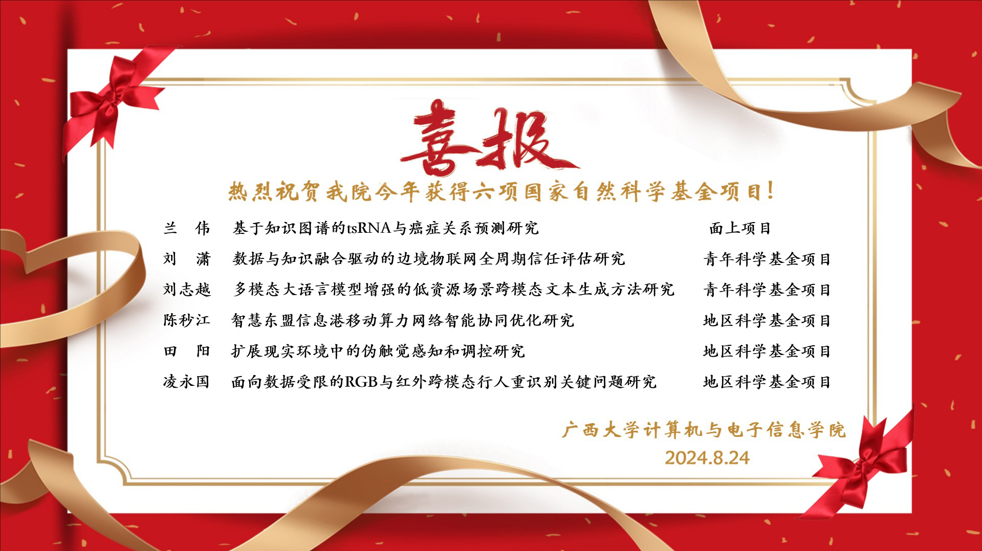 热烈祝贺jdb电子官网2024年获得六项国家自然科学基金项目!