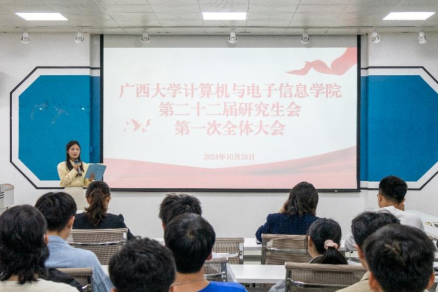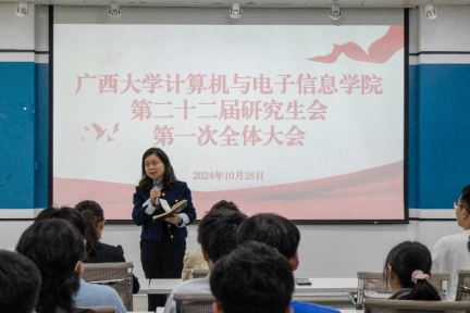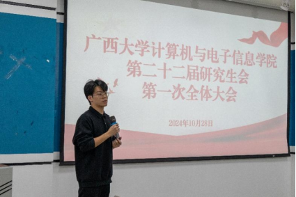 2024年10月28日下午,jdb电子游戏官方网站第二十二届研究生会第一次全体会议在学院一楼报告厅顺利召开。学院团委书记杨洋老师、研究生办公室秘书胡亮青老师和黎西妮老师、研究生会秘书长张星月老师、辅导员魏艳艳老师及研究生会全体成员出席此次会议。会议由研究生会执行主席出君儒同学主持。