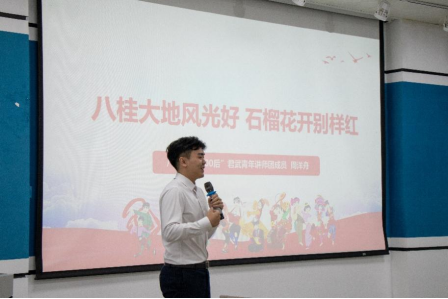 会议伊始,jdb电子游戏官方网站“00后”君武青年讲师团成员、外国语学院2022级研究生周洋舟同学作主题宣讲。周洋舟同学以“八桂大地风光好,石榴花开别样红”为主题,以人民币上的民族语言为切入点,深入阐述了民族团结的重要性,并结合习近平总书记2023年12月在广西考察期间的重要讲话精神,呼吁青年用实际行动和创新思维,将民族团结融入日常生活、学习和工作中,用心用情让民族团结之花绽放在八桂大地。