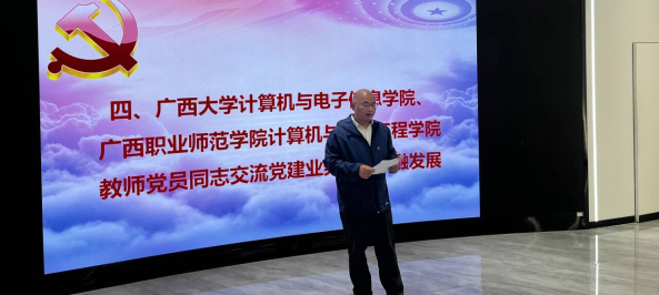 活动在jdb电子游戏官方网站四教中楼3楼301室举行,jdb电子游戏官方网站党委书记赵进创同志,广西职业师范学院计算机与信息工程学院党委书记赵域同志,以及两个党支部的党员参加活动,共同探讨如何在新时代背景下,通过党建引领教育事业的高质量发展。