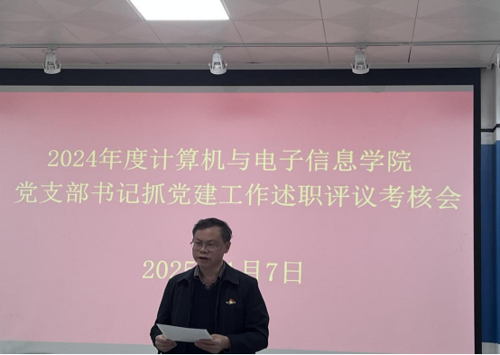 2025年1月7日,jdb电子游戏官方网站在一楼报告厅组织召开党支部书记抓党建工作述职评议考核会。会议由学院党委书记赵进创同志主持,学院党委委员、专职组织员以及党支部书记参加会议。