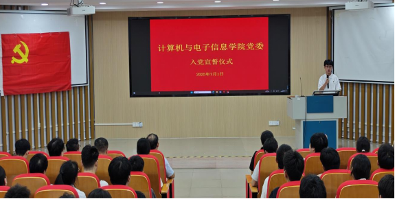 2025年7月1日下午,jdb电子游戏官方网站党委在学院214报告厅举行了庄严的入党宣誓仪式。学院党委书记赵进创同志、副书记夏士岚同志以及梁舒琦等118名新发展党员参加本次入党宣誓仪式。学院党建工作委员会党建部部长陈聪同志主持本次仪式。