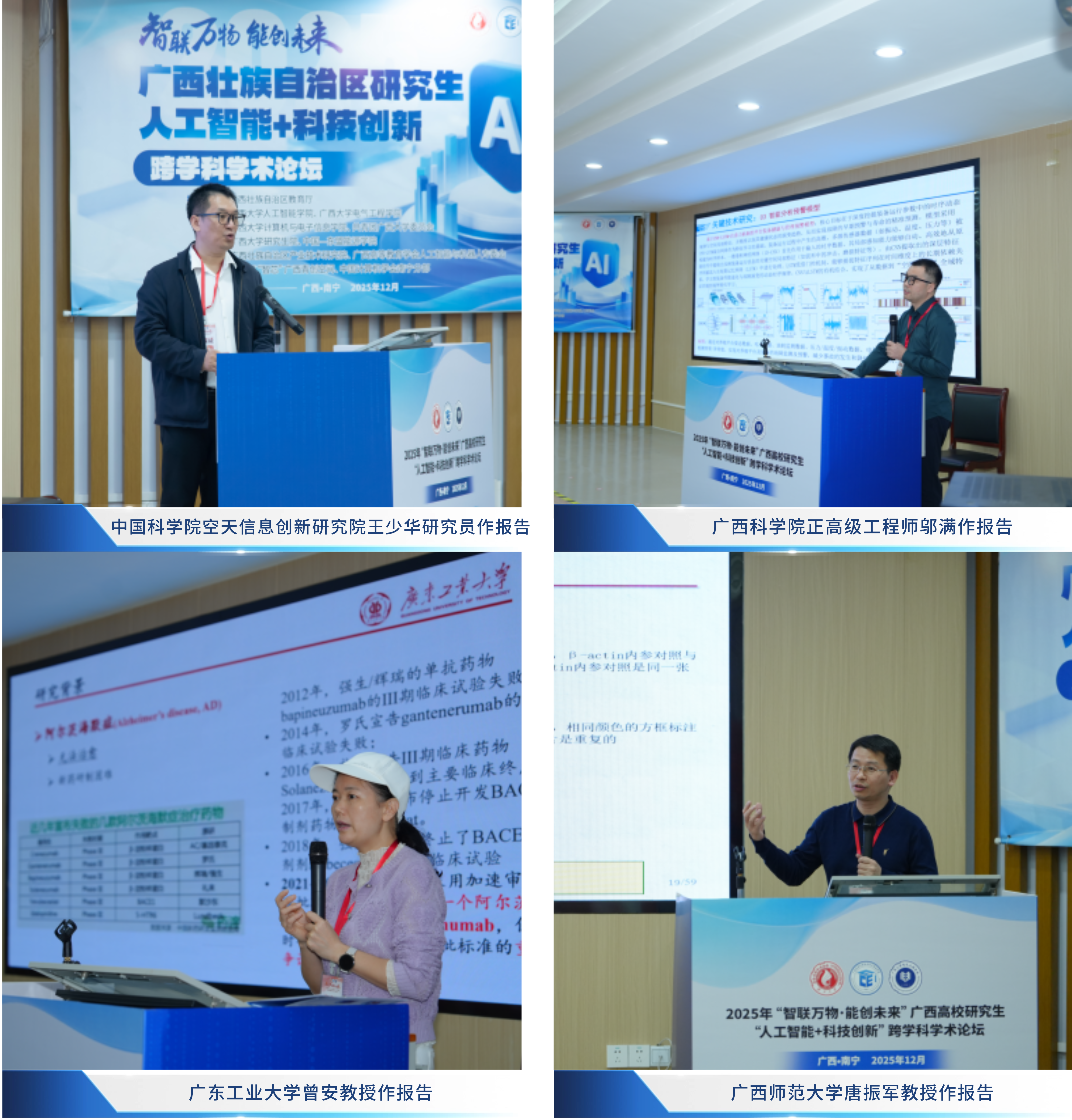 2025年12月2日,由jdb电子游戏官方网站人工智能学院、电气工程学院、jdb电子游戏官方网站联合校团委、研究生院等单位共同主办的“智联万物·能创未来”广西高校研究生人工智能+科技创新跨学科学术论坛在我校顺利开幕。本次论坛由广西壮族自治区教育厅立项资助,广西高等教育学会人工智能与机器人专委会、新能源“智芯”广西青创空间和中国计算机学会南宁分部等单位协办,汇聚了区内外人工智能及相关领域的知名专家学者,吸引了来自jdb电子游戏官方网站、广西师范大学、桂林电子科技大学、南宁师范大学、广西民族大学等全区十余所高校的研究生、导师代表近300人参与,呈现了一场高规格、跨学科、深融合的学术盛会。 图1 开幕式大照片 jdb电子游戏官方网站研究生院常务副院长彭林欣、校团委书记雷圆媛、电气工程学院党委副书记、副院长张镱议以及各参会高校教师代表等嘉宾出席开幕式,开幕式由jdb电子游戏官方网站/人工智能学院常务副院长张振荣主持。 图2 现场出席的各位嘉宾和同学们 开幕式上,彭林欣代表学校致辞。他强调,人工智能作为引领未来的战略性技术,正以前所未有的广度与深度赋能千行百业。jdb电子游戏官方网站主动服务国家战略与区域发展需求,今年正式成立人工智能学院,并成功招收首届本科生。本次论坛的举办,是学校推动学科交叉融合、培育高层次创新型人才的重要举措,旨在为全区研究生搭建一个开放、协同、前沿的学术对话平台,助力打造面向东盟的人工智能创新高地。 图3 jdb电子游戏官方网站研究生院常务副院长彭林欣致辞 在致辞中,雷圆媛鼓励青年学子勇担时代使命,以“跨界融合”的视野拥抱人工智能浪潮,以“问题导向”的思维扎根八桂大地,将论文写在祖国南疆和产业一线,在服务区域高质量发展中实现青春价值。 图4 共青团jdb电子游戏官方网站委员会书记雷圆媛致辞 本次论坛分为一个专家主旨报告主论坛和5个“研究生分享交流+教师点评和讨论”的分论坛。主论坛由电气工程学院李勇老师和jdb电子游戏官方网站兰伟老师共同主持;分论坛由电气工程学院研究生会代表担任主持人,各学校教师代表作为嘉宾进行点评。 本次论坛的一大亮点是邀请了多位区内外知名专家学者分享前沿洞察。中国科学院空天信息创新研究院王少华研究员、广东工业大学计算机学院曾安教授分别就“高智能空间计算”和“阿尔茨海默症智能诊断”作了精彩的主旨报告,带来了国家级科研机构的先进理念与技术视野。区内专家代表,广西科学院邬满正高级工程师、广西师范大学唐振军教授也分别结合“北部湾海洋牧场智慧管控”和“图像哈希技术”等本土化应用场景,分享了扎实的研究进展与实践经验。专家们的报告高屋建瓴又紧贴实际,极大地拓宽了师生们的学术视野,为研究生们的科研方向提供了宝贵指导。 论坛聚焦 “AI+”跨学科深度融合,设置了涵盖 “人工智能+双碳”、“人工智能+海洋与新能源”、“人工智能+智能制造”、“人工智能+智慧农业”、“人工智能+东盟大数据挖掘/医疗/艺术” 等多个前沿方向的分论坛。来自全区各高校不同学科背景的研究生们围绕这些主题,汇报最新研究成果,展开了热烈而深入的探讨。现场思想碰撞频繁,交流氛围十分活跃,充分展现了广西青年学子勤于思考、敢于创新的精神风貌。 本次论坛的成功举办,不仅是一次全区研究生学术交流的盛会,更是推动 “人工智能+” 赋能广西特色产业、促进产学研用协同创新的重要契机。它有力促进了不同高校、不同学科研究生之间的深度对话与合作,激发了青年学子的科研热情与创新潜能,对于提升广西高校人工智能领域的研究生培养质量、凝聚区域学术力量、服务广西经济社会高质量发展具有重要意义。论坛彰显了jdb电子游戏官方网站在引领区域人工智能学科发展、培育跨学科创新人才方面的主动作为与责任担当。 一审一校:杨洋、林文潮、黄千芊 二审二校:夏士岚 三审三校:赵进创