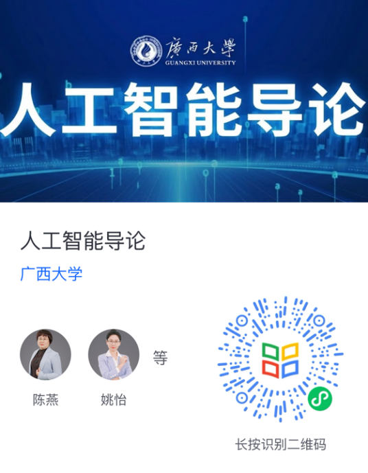 近日,由jdb电子官网教师陈燕、姚怡、覃希联合打造,由校企合作单位广西艾学教育科技有限公司提供课程资源数字化整合和视觉优化支持的《人工智能导论》在线开放课程(MOOC)正式上线国内领先的教育平台——学堂在线。