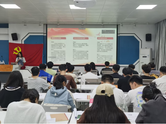 2023年11月24日,jdb电子游戏官方网站本科生第四党支部 “思想旗帜引领伟大征程” 主题党日活动在学院一楼报告厅举行,本次活动由党支部书记杨洋同志主持,党支部党员同志40人参加。