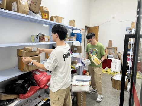 研究生第一党支部的党员现场积极行动,先将快递站中的所有快递取出,在站外按照快递公司分类摆放,将快递站中的废弃包装以及灰尘打扫干净,之后在每层货架上贴上写好公司名称的标签贴纸,把之前分开摆好的快递按照纸盒包装与气泡袋包装分开放回对应的货架。对于一些不便放入货架的大件快递,则在旁边的一处空地集中存放,并且贴上了提示条。整理完毕后,为了防止货物杂乱堆放的情况再次出现,玻璃门上贴上告示,提醒快递员分类摆放快递,同时也提醒学院师生不要乱扔快递包装,一起维护爱心驿站环境。