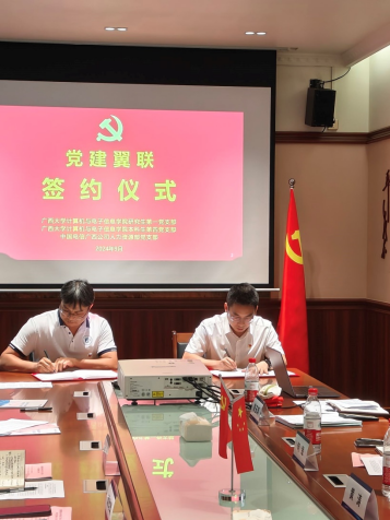 随后进行座谈交流。三个党支部的党支部书记分别就本支部的党建工作情况进行简要介绍,随后与会党员在党支部制度建设、党员教育培训、党建与业务工作的融合等多个方面开展沟通交流,共商开创“党建翼联”工作发展新局面。最后,jdb电子游戏官方网站研究生第一党支部、本科生第四党支部和中国电信广西分公司人力资源部支部共同签订“党建翼联”主题实践合作书。