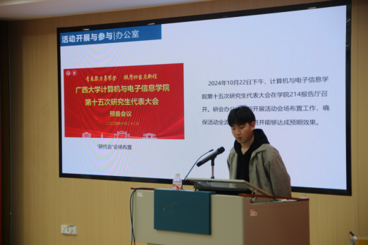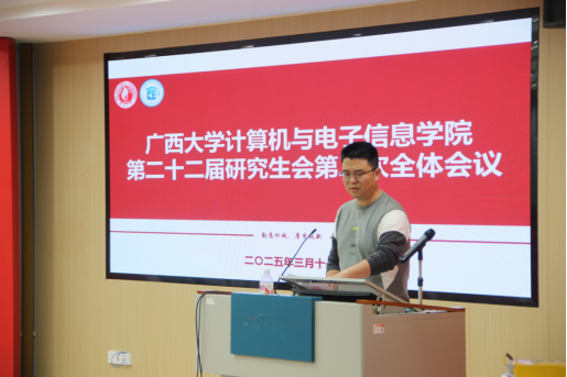 2025年3月11日下午,jdb电子游戏官方网站第二十二届研究生会第二次全体会议在学院214报告厅顺利召开。本次大会由学院研究生会执行主席史承悦同学主持,学院党委副书记邓珍琪老师、团委书记杨洋老师、研究生办公室秘书胡亮青老师、辅导员张星月老师和魏艳艳老师,以及学院第二十二届研究生会全体成员和研究生各班团支书、班长出席会议。
