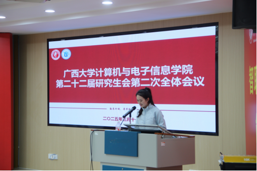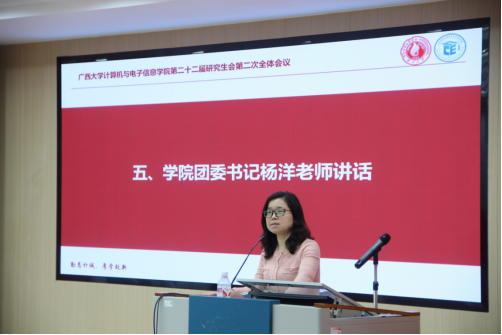 杨洋老师充分肯定了本次会议的重要意义,高度评价了研究生会及各班级学生干部在学院学生工作中的重要作用。她强调,研究生会要保持优良传统,结合人工智能热点话题积极探索新的工作思路,提高执行力和影响力,为学院的学生工作注入新的动力。