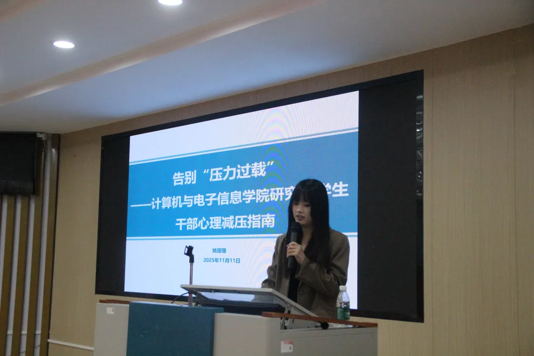 2025年11月11日上午,jdb电子游戏官方网站研究生会在学院214报告厅成功举办了 “学生干部训练营”第四期——心理团辅培训。本次活动旨在帮助学生干部掌握心理调适技巧,有效缓解日常学习与工作中的压力。活动特邀学校学生发展指导中心姚璎珊老师担任主讲嘉宾,培训由jdb电子官网研究生会成员阮梅琳同学主持。